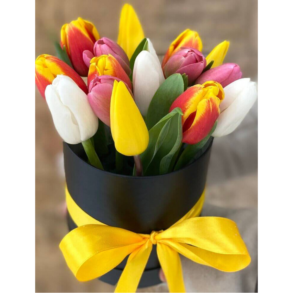 Нежно и по весеннему весело смотрится яркий букет тюльпанов,в стильной коробке. Подарить его значит признаться в самых теплых чувствах, подчеркнуть взаимопонимание и уважение. Гармония цвета и формы,безподобная свежесть бутонов, непременно вызовут у адресата позитивные эмоции.
